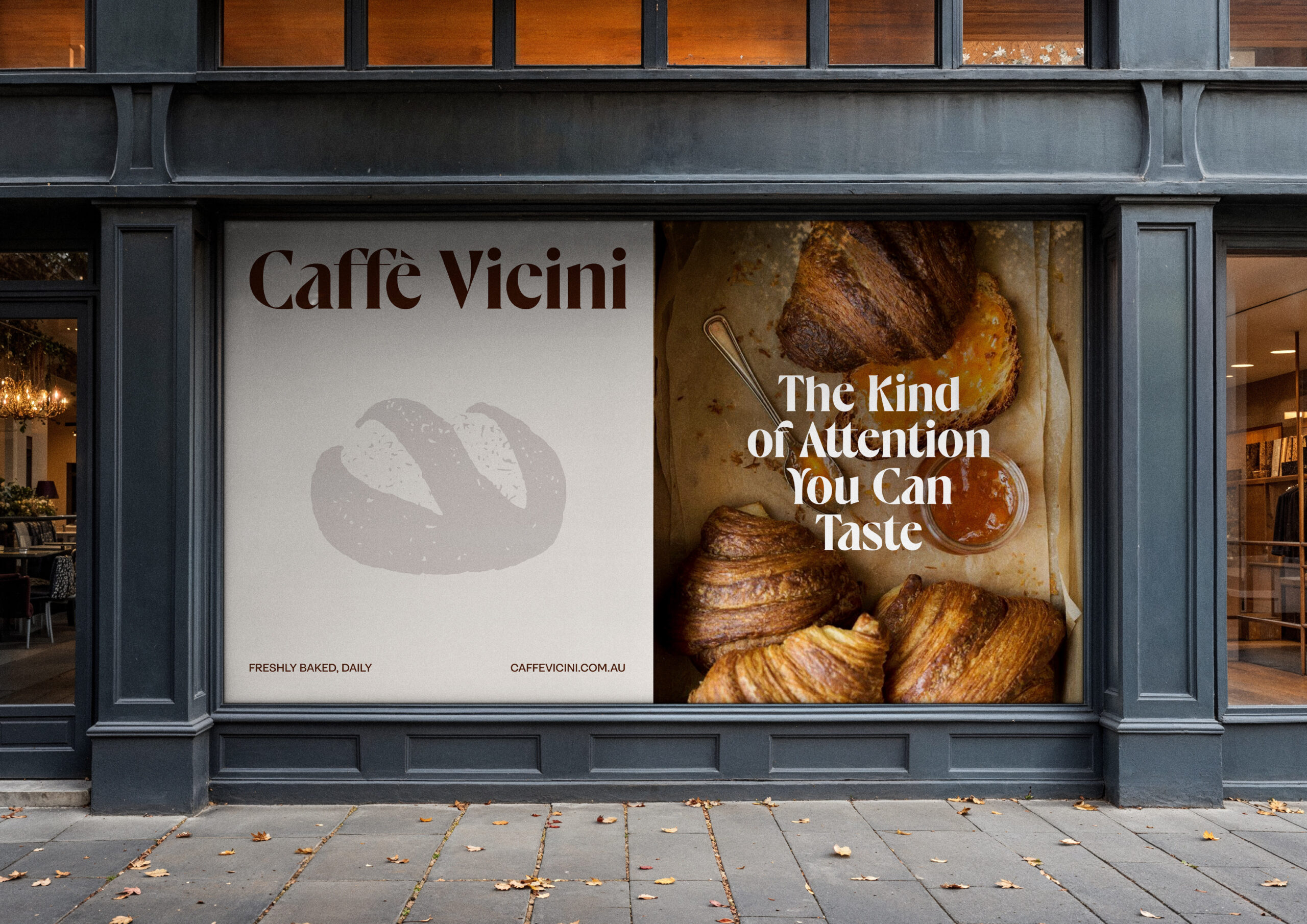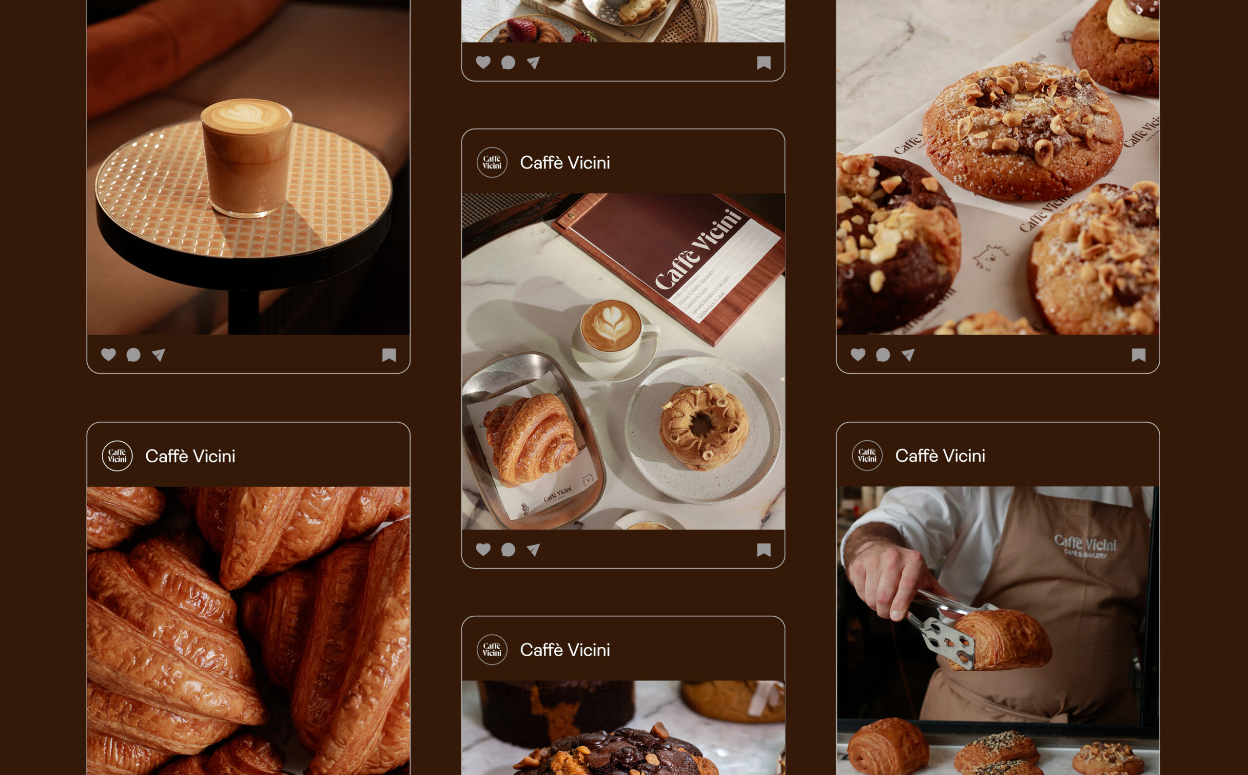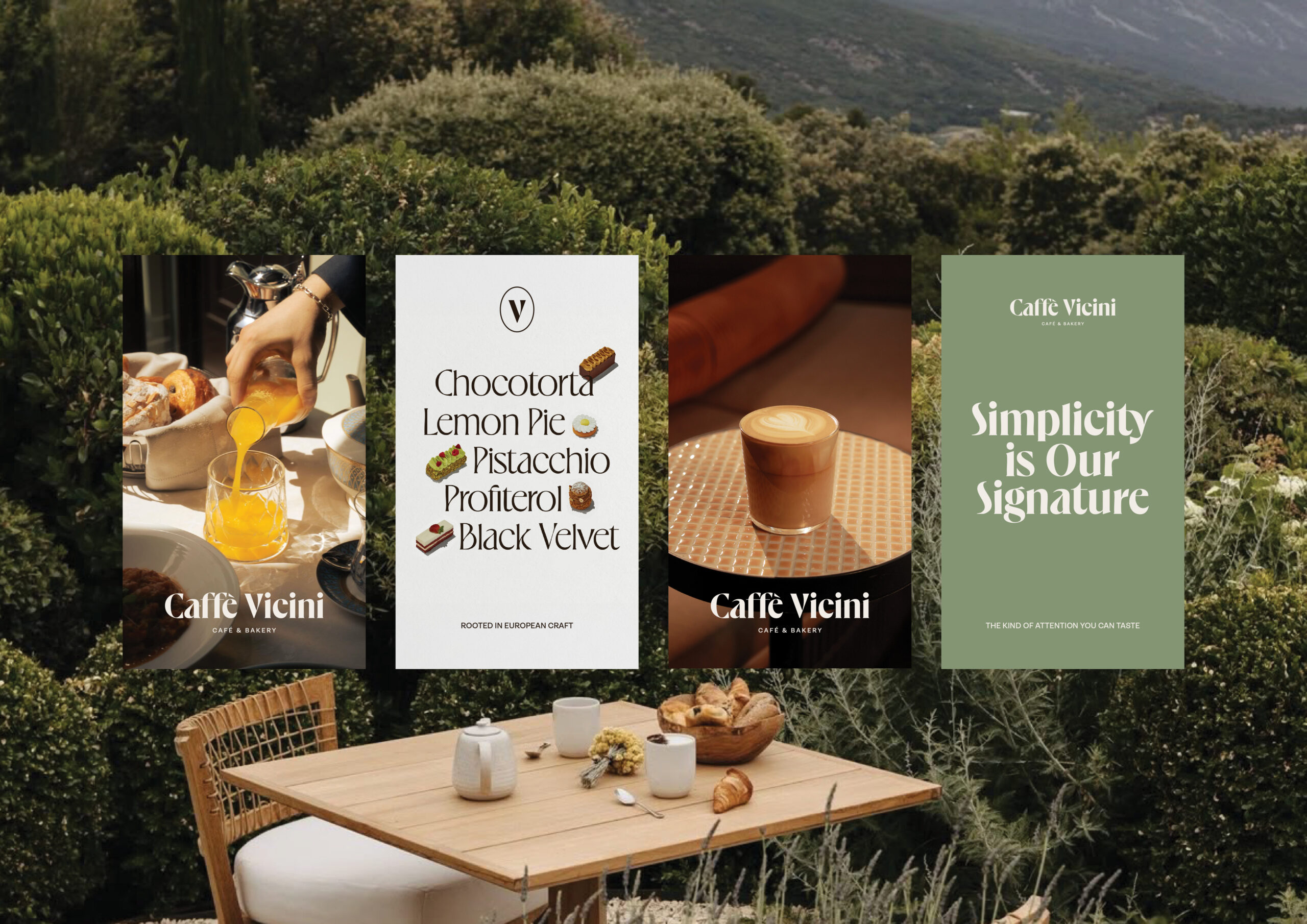 Caffè Vicini was conceived as a neighbourhood café rooted in connection, warmth and everyday rituals. Inspired by the Italian word vicini, meaning “neighbours”, the brand was designed to feel familiar, welcoming and quietly refined. The project was led from brand strategy through to art direction, creative direction, and full brand execution, shaping a clear positioning that balances approachability with craft.